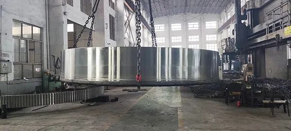 再看,這正在加工的φ7800,單重120噸的大型輪帶。