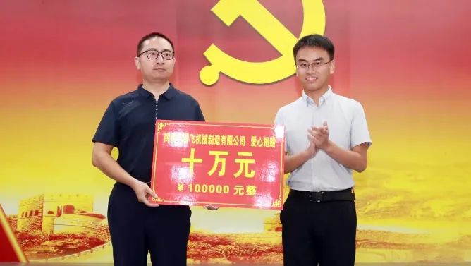 2023年9月8日,河南騰飛鑄鋼參加孟莊鎮(zhèn)政 府舉辦的“99公益日”捐贈儀式,并捐款10萬元整。